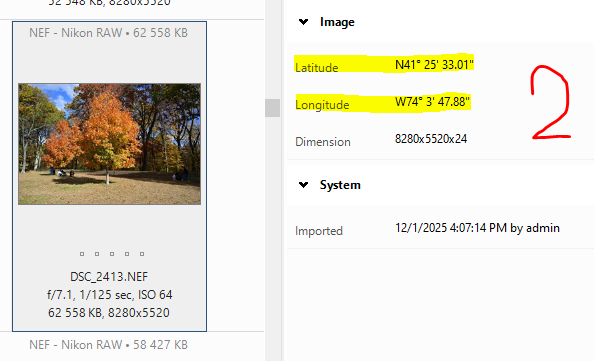 Hello, The MP4 video files have geocoordinates in the XMP tags of the xmp sidecar file. ... GPS Latitude 47 deg 40' 55.83" N GPS Longitude 9 deg 17' 46.62" E ... These appear to be read, because the marker for the MP4 file's geodata is active on the map. However, the geodata for MP4 files is not displayed in the Properties panel. Geo data belongs to the “Image” section in the Properties panel. Is this the reason why it is not displayed? regards, Uwe -